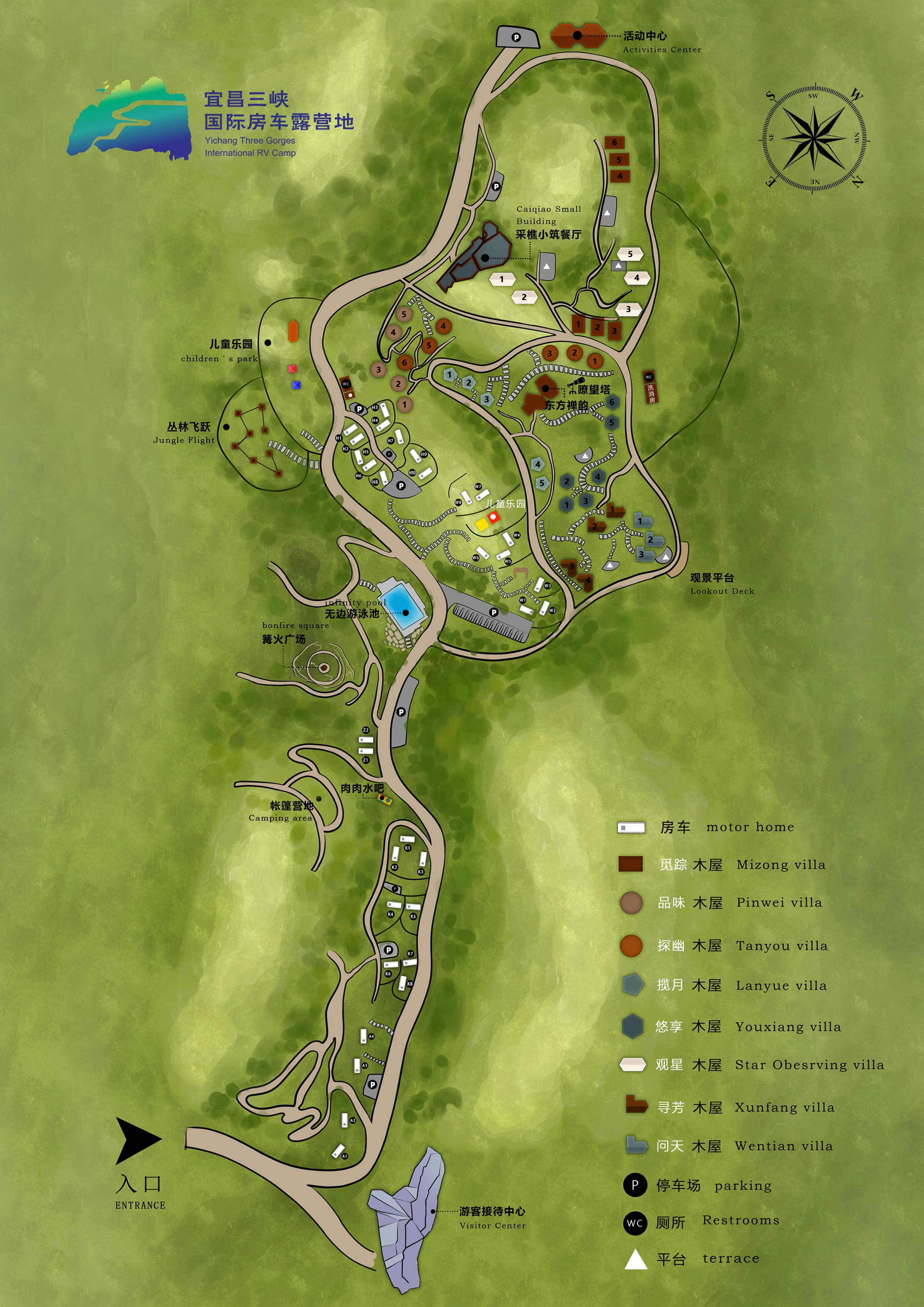 營地位于創(chuàng)建中的三峽國家級旅游度假區(qū)內(nèi),長江之濱、西陵峽畔的森林公園中,是全國首家臨江山地型房車露營地,占地約430畝,營地內(nèi)多為山地峽谷,重巒疊翠,溝壑深幽,奇石嶙峋,風(fēng)景奇瑰。周圍景區(qū)眾多,交通便利。距三游洞景區(qū)(AAAA)約6公里,三峽人家風(fēng)景區(qū)(AAAAA)約16.8公里,三峽大壩(AAAAA)約20公里,距宜昌市中心城區(qū)約11公里。